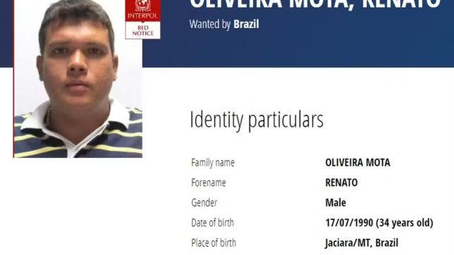 Preso nesta segunda-feira em São Paulo, Renato Oliveira Mota, de 34 anos, estava com seu nome e perfil na difusão vermelha de foragidos internacionais da Interpol.