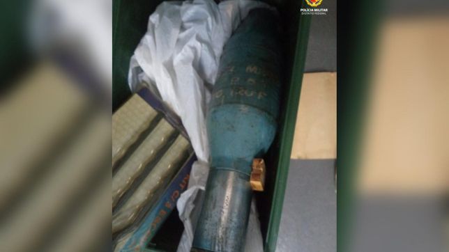 Após a inspeção, policiais constataram que o artefato se encontra inativo. Um revólver calibre 38 também foi encontrado no local. A corporação não informou se o responsável pelo material foi detido.