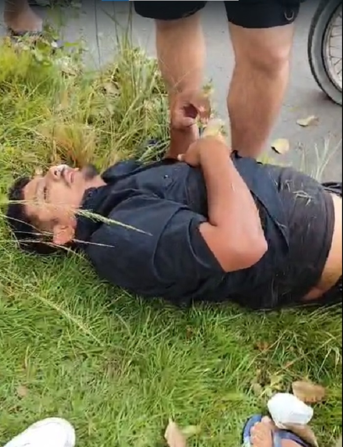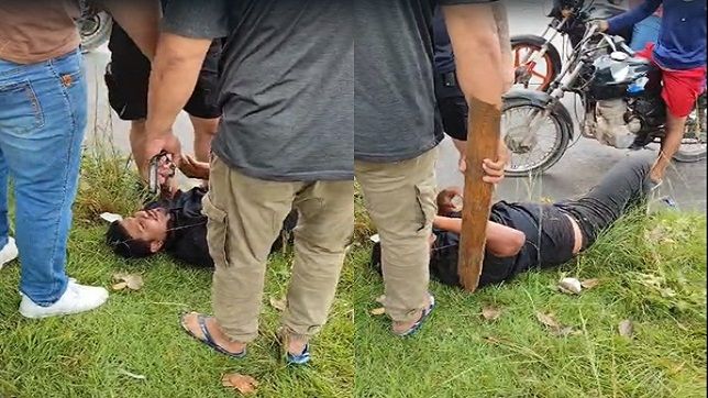 Socorrido por alguns mototaxistas o dono da motocicleta iniciou a perseguição, o assaltante foi encurralado, espancado com pedaços de madeira, chutes e socos, antes de chegar ao local uma equipe de policiais militares.