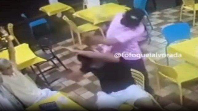 Um dos jovens que estava na lanchonete, mesmo sem esboçar nenhuma reação, inclusive já estava rendido e com as mãos para o alto, foi agredido com um tapa na cabeça.