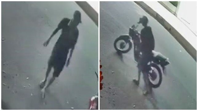 O local do crime estava escuro mas as imagens mostram o bandido furtando a motocicleta