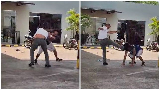A luta corporal teve atracação e foi encerrada com um violento chute na cabeça de um dos envolvidos