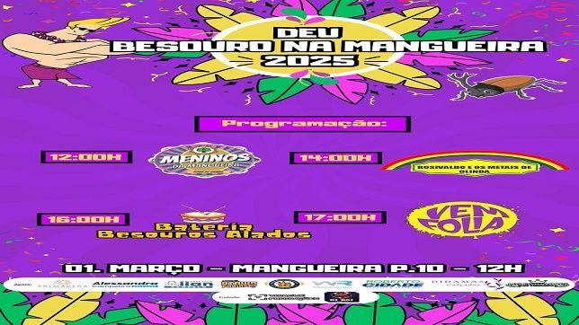 No sábado dia 01 de março, na Bola do Mindu, acontece mais uma edição do Bloco de Carnaval Deu Besouro na Mangueira.