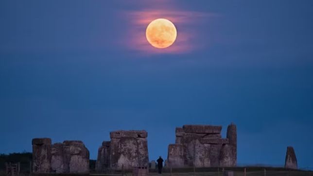 Fotógrafa inglesa registra rara 'Lua de Morango' em Stonehenge