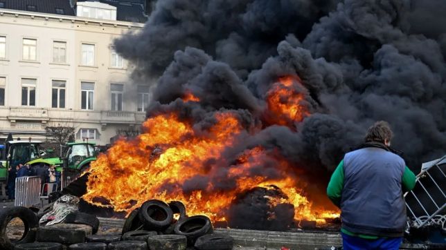 Apesar da intervenção policial para liberar a praça incendiada, as principais vias do centro de Bruxelas permaneceram bloqueadas por tratores, paralisando completamente o trânsito na região central da capital belga.