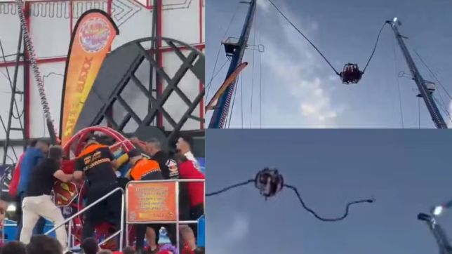 De acordo com informações iniciais, o incidente aconteceu quando um dos cabos de segurança do brinquedo, conhecido como “estilingue”, se rompeu enquanto a atração estava em funcionamento. No momento da falha, as vítimas estavam suspensas a dezenas de metros de altura, o que provocou momentos de pânico entre participantes e testemunhas.