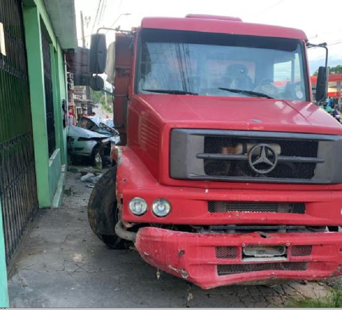 A caçamba de placa IWS 4202, danificou a lateral de um Cross Fox e na segunda colisão, destruiu completamente um carro Fiat Pálio Fire, no final da tarde desta quarta-feira, 5, na Avenida Camapuã, bairro da Cidade Nova, Zona Norte de Manaus.