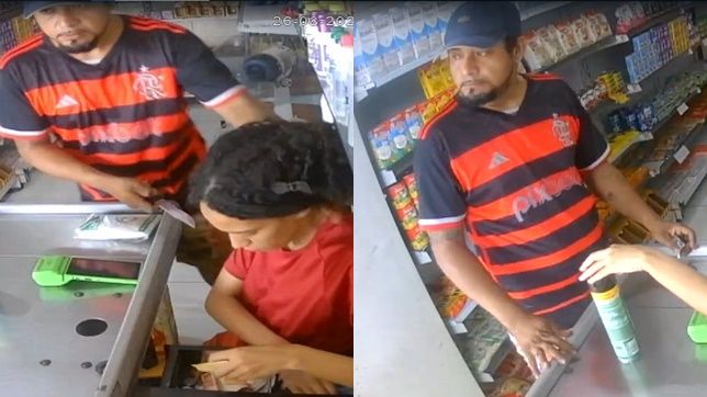 Depois de render a jovem que está no serviço de caixa, o bandido pega todo o dinheiro, sempre fazendo ameaças, e em seguida vai embora do local, deixando a funcionária apavorada.