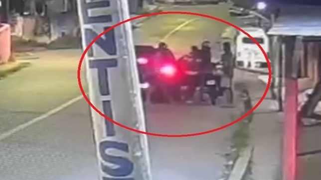 Momento em que os bandidos chegam e assaltam o motorista de aplicativo e o passageiro