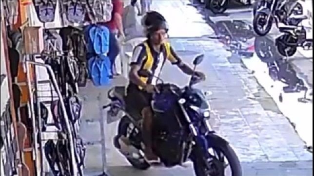 A câmera de segurança de uma loja filmou um homem furtando uma motocicleta na tarde desta quarta-feira, 3, na Rua Padre João Ribeiro, bairro da Cidade Nova.