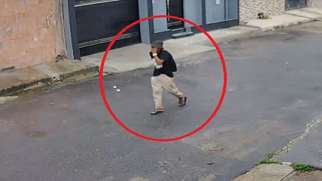 A câmera de segurança filmou o bandido caminhando na rua antes de cometer mais um crime na tarde do último domingo