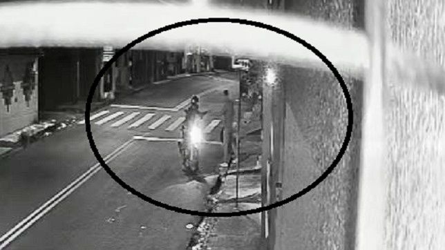 Momento que o motoqueiro aborda e rouba o celular de um morador que está saindo de casa para trabalhar