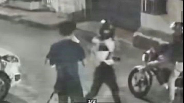 A câmera de segurança de uma residência filmou o momento do crime praticado por dois motoqueiros.