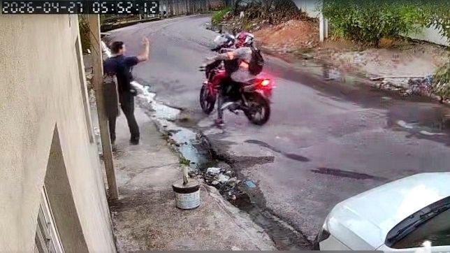 A câmera de segurança da residência vizinha filmou, primeiramente, os dois homens, que são amigos e trabalham na mesma empresa, saindo para trabalhar e, de um momento para o outro, um deles reaparece no vídeo, correndo e sendo abordado por dois motoqueiros.