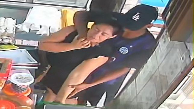 As imagens são nítidas e, por alguns momentos, a dona do mercadinho fica em perigo, após ser imobilizada por trás e ter a faca encostada no pescoço pelo criminoso, que, em seguida, retira todo o dinheiro da caixa registradora.