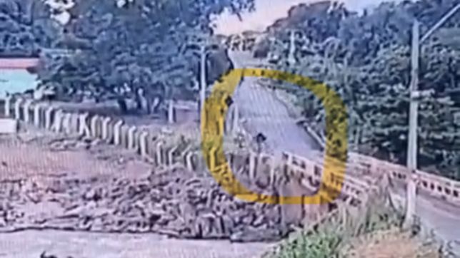 Imagens de câmeras de segurança registraram o acidente que terminou na morte de um motociclista na ponte da Usina Rochedo, em Professor Jamil, região sul de Goiás.