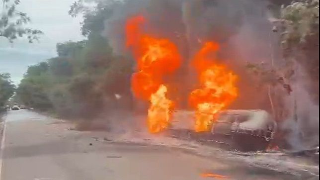 Caminhão-tanque capotou e explodiu na rodovia