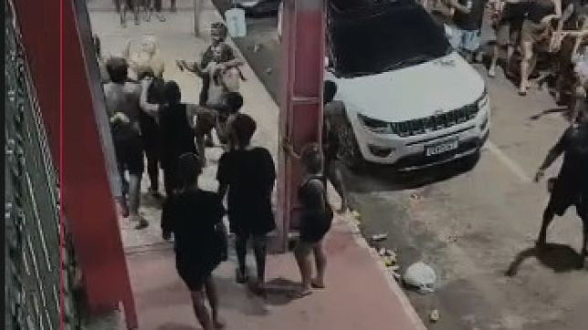 Segundo testemunhas, a briga começou após um bate-boca entre participantes já bastante alterados. Em poucos segundos, a discussão virou pancadaria. Uma mulher que tentou separar acabou indo parar no chão, enquanto outros envolvidos tentavam partir pra agressão, mas estavam tão bêbados que mal conseguiam acertar os golpes.