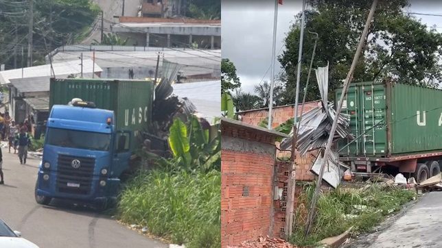 Uma carreta ficou sem freios na subida da ladeira, voltou de ré e colidiu com uma residência, por volta das 10h da manhã desta segunda-feira, 11, na Rua Vasco de Ataíde, Comunidade Boas Novas, bairro da Cidade Nova, Zona Norte de Manaus.