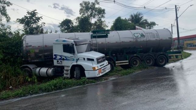 Na manhã deste sábado (13), uma carreta saiu da pista e foi parar em uma área de mata na Avenida Cosme Ferreira, localizada na Zona Leste de Manaus. O acidente aconteceu próximo à saída do bairro Colônia Antônio Aleixo.