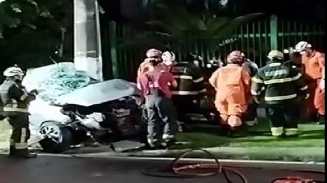 ficou em destroços na forte colisão com o poste