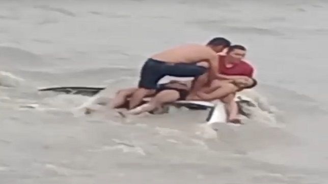 Resgate complicado durante a forte correnteza no igarapé