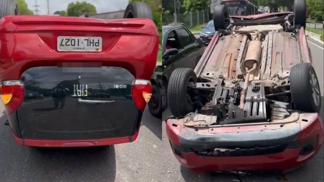 O Fiat Mobi, vermelho, placa PHL 102, capotou por volta das 10h30 da manhã desta quinta-feira, 9, na Avenida Rodrigo Otávio, barro do Japiim, Zona Sul de Manaus.
