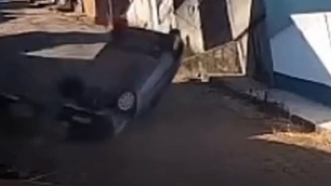 Imagens de câmeras de segurança registraram o momento do acidente. Nas cenas, é possível ver o carro tentando realizar uma manobra quando perde estabilidade possivelmente após uma das rodas ficar suspensa, tombando lateralmente antes de capotar e despencar pela encosta.
