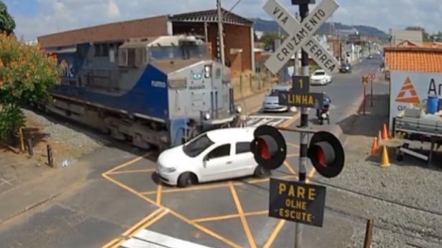 Um grave acidente chamou atenção no interior de São Paulo após um carro ser atingido por um trem em uma passagem de nível. O caso aconteceu durante a travessia da linha férrea e foi registrado por câmeras de segurança, que mostram toda a dinâmica do momento em que o veículo acaba ficando na rota da composição.