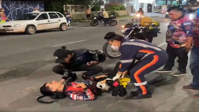 Moto Uber na pista agonizando e recebendo primeiros socorros da equipe do Samu na noite desta quinta-feira