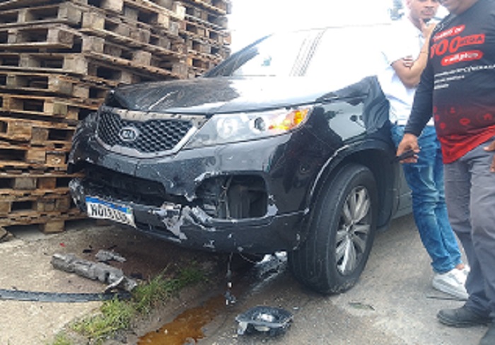 O acidente foi violento quando um carro modelo Kia/Sorento, de cor preta, placa NOX 8108 atropelou e passou por cima de uma motocicleta, que não teve a placa e modelo divulgados.