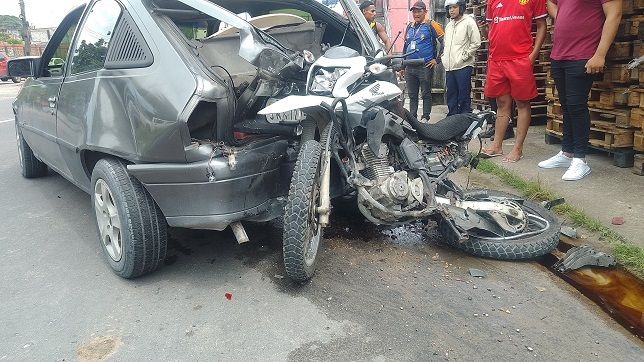 Uma motocicleta foi destruída em um acidente que aconteceu na manhã desta segunda-feira, 17, na Avenida José Henrique Bentes Rodrigues, bairro do Monte das Oliveiras, Zona Norte de Manaus.