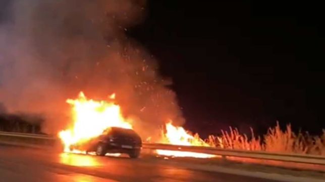 Um carro pegou fogo e assustou quem passava pela BR-020 na noite deste domingo (31/8). O Fiat Palio estava tomado pelas chamas.