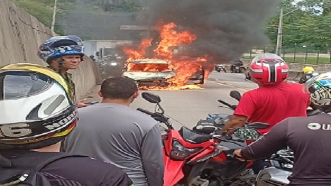 Um carro modelo Fiat Siena, de placa não divulgada, pegou fogo na metade da manhã desta sexta-feira, 23, no viaduto da Avenida Darcy Vargas, bairro da Chapada, Zona Centro-Sul de Manaus.