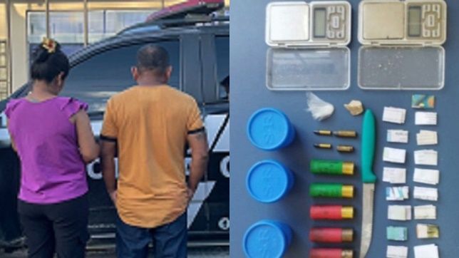Eles foram autuados por tráfico de drogas majorado, associação para o tráfico, posse irregular de munição de uso permitido e posse irregular de munição de uso restrito. A prisão aconteceu na residência do casal, localizada no bairro Santa Teresinha, no município.