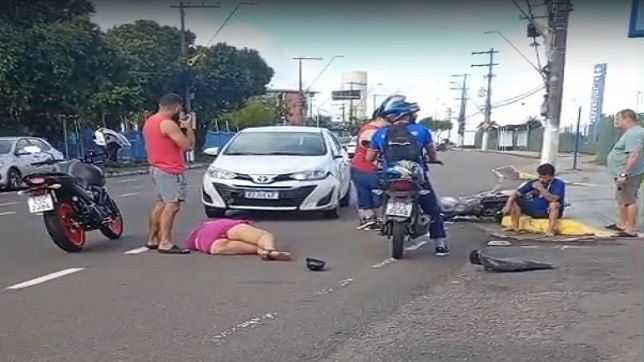 Um casal que trafegava em uma motocicleta sofreu um acidente, ao colidir com um carro, por volta das 9h15 da manhã desta sexta-feira, 26, na Avenida Pedro Teixeira, bairro Dom Pedro, Zona Centro-Oeste de Manaus.