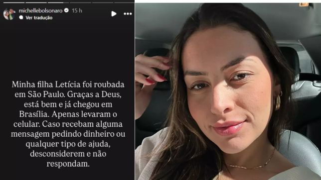 Michelle Bolsonaro diz que filha teve celular roubado em São Paulo