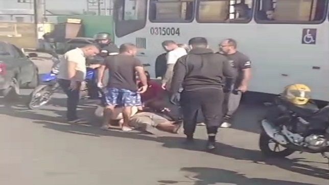 O homem que conduzia a picape modelo Saveiro, de cor preta, não se feriu e chegou a trocar ofensas morais com alguns pedestres e motoristas, que o acusaram de provocar o acidente.