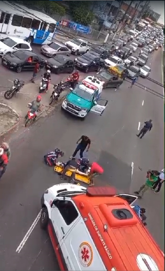 A colisão aconteceu no início da Avenida Torquato Tapajós, em frente ao Supermercado Carrefour, bairro de Flores, Zona Centro-Sul de Manaus.