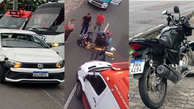 A motocicleta modelo Honda Start, preta, placa PHW 4I94 colidiu com um carro modelo Volkswagen Gol, branco, placa QZJ 3891, no horário de intenso fluxo de veículos em todas as áreas da cidade.