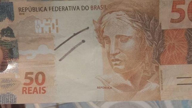 Cédula falsificada usada para pagar despesa em um dos estabelecimentos não tem a marca dágua