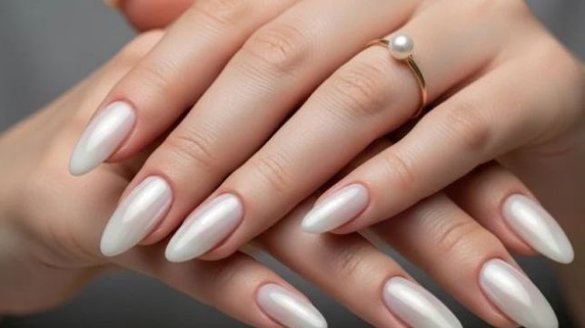 Para quem deseja fugir totalmente do esmalte cremoso, o perolado surge como opção refinada. O brilho é discreto, longe do glitter, e lembra o acabamento acetinado visto em passarelas e editoriais. O efeito luminoso ajuda a destacar as unhas sem pesar no visual, tornando-se ideal para eventos ou produções mais elaboradas.