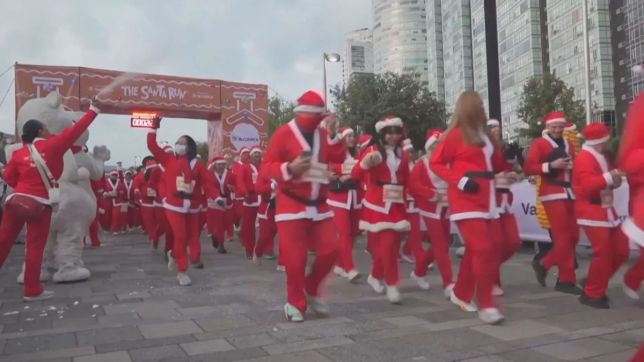 Os participantes se vestiram de Papai Noel e partiram do Parque La Mexicana, localizado na zona oeste da cidade, para a tradicional corrida de dez quilômetros.