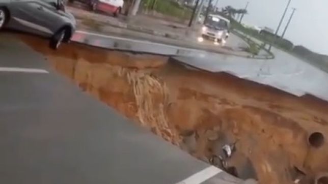 O desmoronamento provocou a queda de veículos dentro do buraco, incluindo carros e motocicletas. Imagens divulgadas nas redes sociais mostram a dimensão do impacto, com automóveis praticamente engolidos pela abertura no asfalto.
