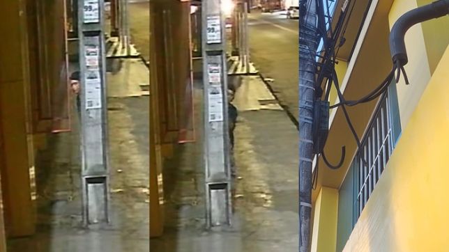 As imagens do circuito interno mostram o momento em que o suspeito se aproxima da Pizzaria Big Beijo e corta os cabos de energia do local, numa tentativa de desativar o sistema de alarme e monitoramento.