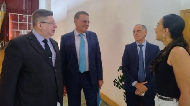 Ministro do STJ, Raul Araújo Filho, Alexandre Miguel e Plínio César Coelho, cumprimentados pela juíza Juliana Silva da Costa, na chegada ao evento de lançamento