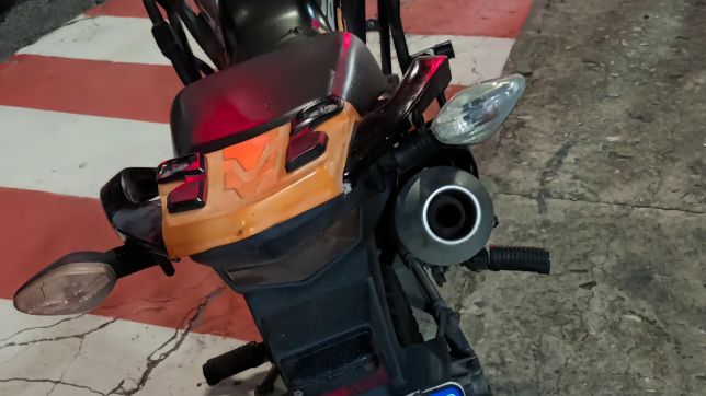 O veículo, modelo Honda NXR 160 BROS ESD, trafegava pela cidade com o número “5” da placa, transformado em número “6”, a partir da colagem por meio de fita adesiva preta. Além disso, foi constatado, também, que a motocicleta estava com o licenciamento em atraso.