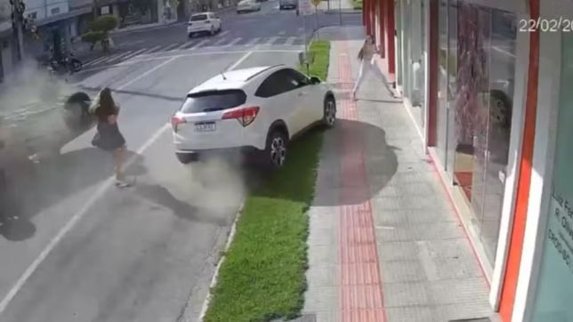 Vídeo flagra momento em que carro colide contra outro veículo, capota e quase bate em pedestre. VEJA