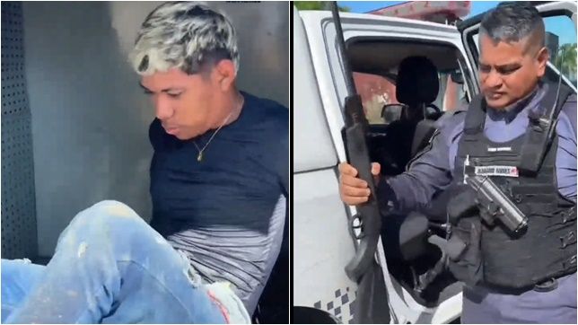 Um dos participantes do assalto, que estava com uma espingarda, foi um dos presos durante a perseguição policial