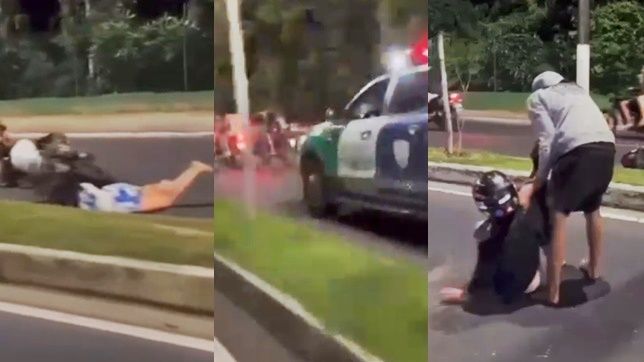 Um vídeo gravado por uma dupla de motoqueiros que também participavam do “rolezinho”, foi divulgado nas redes sociais e mostra cenas do exato momento da perseguição policial e da queda dos dois casais.